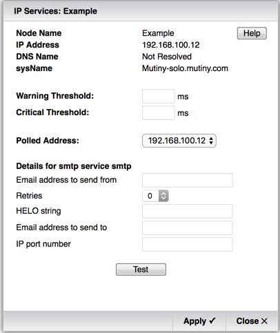 The SMTP IP Service test provides a front-end mail server test by attempting to deliver an email.