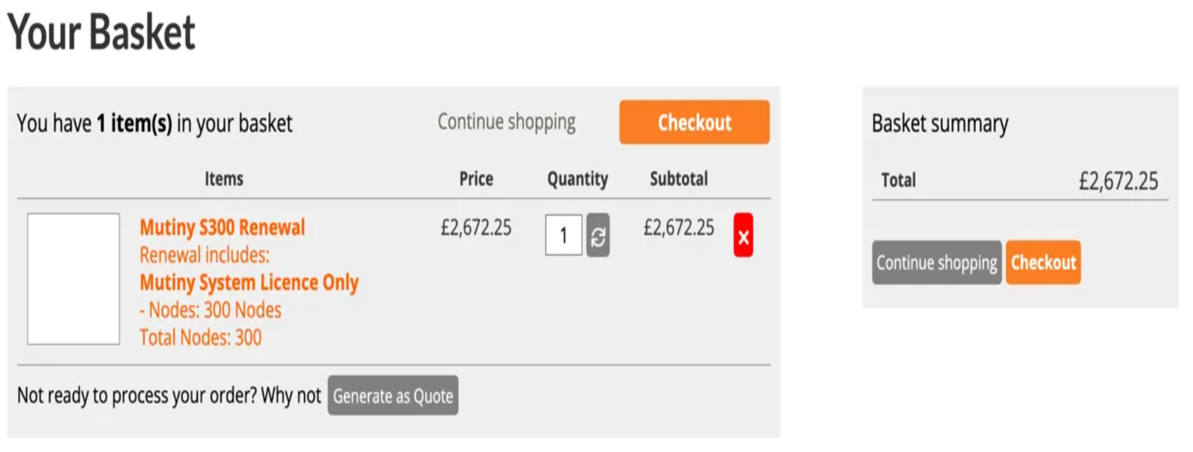 If you are not quite ready to checkout or wish to have your basket sent to you as a Quotation; Press the Generate Quotation button and it will be emailed to you.